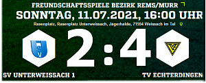 Im 2.Spiel binnen drei Tagen siegt der TV Echterdingen beim SV Unterweissach (Bezirksliga Rems-Murr) mit 4:2 (1:2). Den 2:0-Rückstand bis zur 26.Minute verkürzte Caglar Celiktas. in der 29. Min auf 2:1. Durch Treffer zwei Treffer von Nils Große-Scharmann in der 54.Minute und 86.Minute und einem weiteren Treffer von Caglar Celiktas (88.) konnte der TVE die Partie noch drehen.