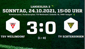 Der TV Echterdingen ist zunächst wieder einmal die Tabellenspitze los - mit 3:0 unterlag der TVE beim TSV Weilimdorf und rangiert mit nun 26 Punkten auf dem 4.Tabellenplatz. Der 1:0-Halbzeitführung der Heimelf durch Samir Genc (19.) - ließ der TSV noch weitere Treffer nach dem Wechsel folgen - 2:0 (63.) durch Tamer Harun-Fara und das 3:0 (80.) Aaron Nkansah.