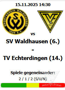 Im letzten Spiel in diesem Jahr empfängt der TV Echterdingen den FV Neuhausen. Nach Abschluss der Vorrunde belegt der TVE mit 12 Punkten einen enttäuschenden 14.Tabellenplatz und befindet sich derzeit auf einem der Abstiegsränge. Nach dem Auswärtssieg beim SV Waldhausen (2:1) sah man sich schon am Kehrpunkt angelangt, doch prompt folgte wieder ein herber Dämpfer - mit 2:5 unterlagen die Gelb-Schwarzen deutlich dem TSV Bad Boll. Nun im ersten Spiel der Rückrunde heisst der Gegner FV Neuhausen - die entscheidende Frage wird wohl sein : geht der TVE mit einem positive Erlebnis in Winterpause ?