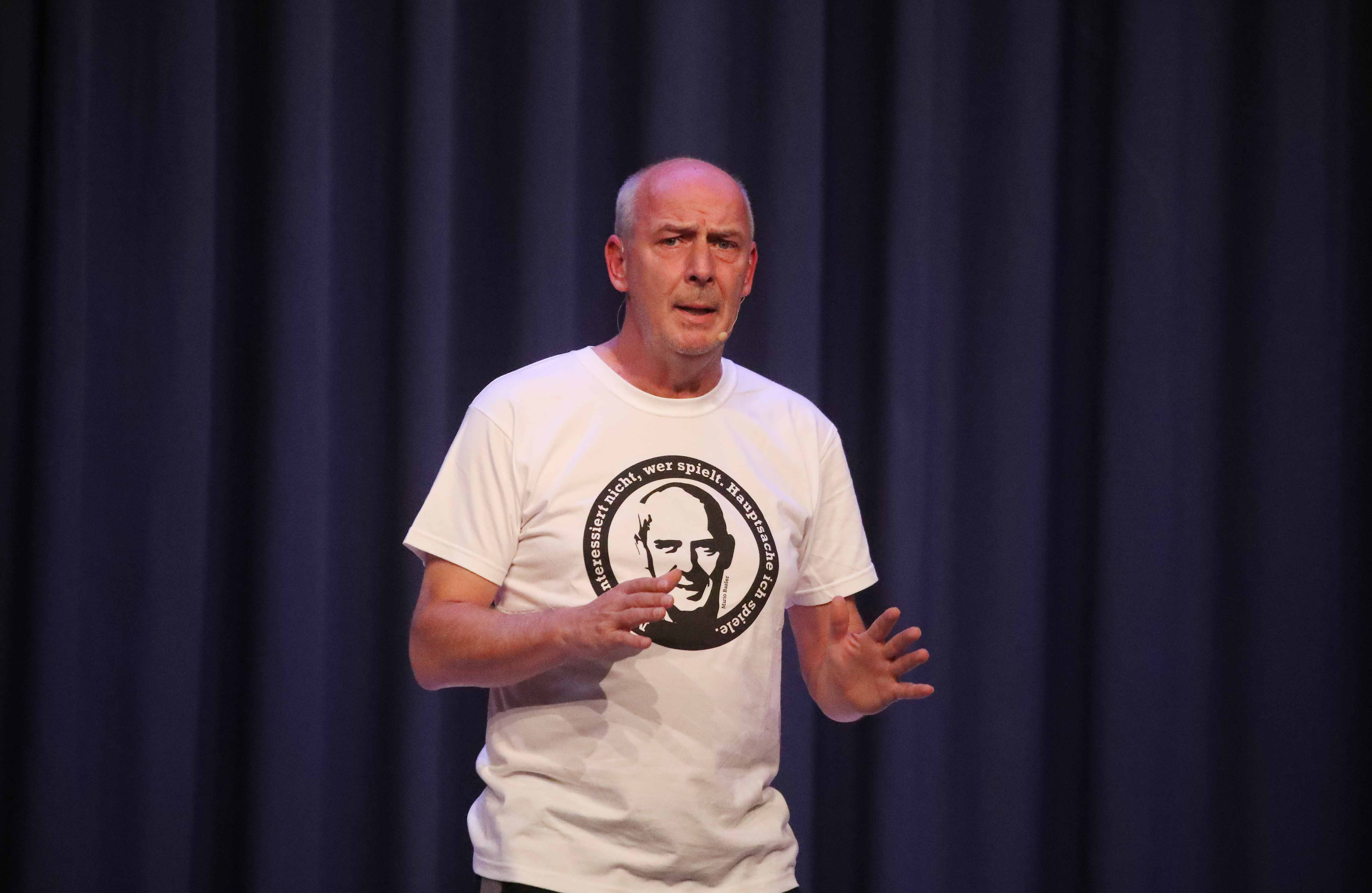 Ja, man kann es wirklich sagen, ein unvergesslicher Abend liegt hinter uns! Mario Basler zeigte sich authentisch, entspannt und trotz 540 km Anreise aus Osnabrück sehr locker. Super-Mario, der sich während seines über 90-Minuten Vortrags völlig unbescheiden zeigte, servierte Stories von Otto Rehagel, Uli Borofka und auch Thorsten Legat fand in seinen unterhaltsamen Erzählungen Erwähnung. Insgesamt eine kurzweilige Darbietung, die alle Gäste, ob Basler-Fans oder nicht, mehr als zufrieden stellte. Der Sportredakteur und Ex-TVE´ ler Jürgen Kemmner interviewte Mario anschließend in unserer Paulaner-Lounge und hier offenbarte Mario vor den begeisterten TVE-VIP-Gästen noch einige Geheimnisse. So liegt die Schmerzgrenze für die Teilnahme am RTL-Dschungel-Camp bei ca. 1 Mio. Euro und ein Fan des Damenfußballs ist Basler eher nicht. Nach dem sehr kurzweiligen Gespräch verabschiedete sich Mario Basler gegen 23 Uhr von der TVE-Familie und machte sich auf den Weg zurück nach Osnabrück, wo er am Sonntag um 14 Uhr sein türkisches Team im Heimspiel der Kreisliga Westfalen betreute und auch 4:1 gewann.