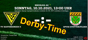webmaster U23 05. Oktober 2021 Zugriffe: 1303 Derby-Time am Sonntag (10.10.) Drucken E-Mail Am kommenden Sonntag, 10.10.2021 heisst im Sportpark Goldäcker wieder Derby-Time Die U23 des TV Echterdingen (3.) empfängt den Orts-Nachbarn Spvgg Stetten (5.). Einfach mit dabei sein und die U23 tatkräftig unterstützen. Anpfiff ist um 13:00 Uhr. Vorheriger Beitrag: U-23 - Stetten 1:1 Zurück Nächster Beitrag: 1:6 Auswärtssieg in Kosova Bernhausen Weiter