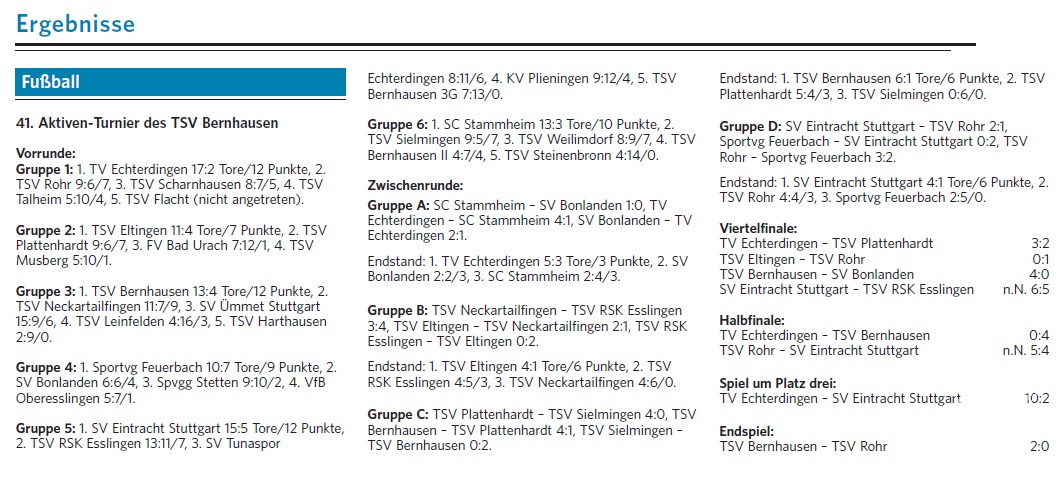 Mit der Optimalpunktzahl von 12 Punkten und einem Torverhältnis von 17:2 zieht der TV Echterdingen somit als Gruppenerster in die nächste Runde ein, als Gruppenzweiter schaffte der TSV Rohr den Sprung in die 2. Runde.