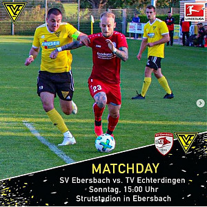 Dem TV Echterdingen gelingt nur 4 Tage nach seiner ersten Saisonniederlage gegen den TSV Oberensingen (1:2) beim Auswärtsspiel in Ebersbach die Überraschung und schlägt den SV Ebersbach/Fils mit 1:3 (0:2). Bereits in der 13.Minute brachte Deniz Bulut die Gelb-Schwarzen mit 0:1 in Front. Bereits 5 Minuten später gelang Nils Große Scharmann, der kurz zuvor für den verletzten Rui Tiago eingewechselt wurde, das 0:2 (18.Minute). Nach der Pause konnte Ebersbach durch Manuel Tamas (47.) auf 1:2 verkürzen, doch erneut Nils Große Scharmann machte den Sieg perfekt und vollstreckte mit seinem 2.Treffer zum 1:3-Endstand (84.).