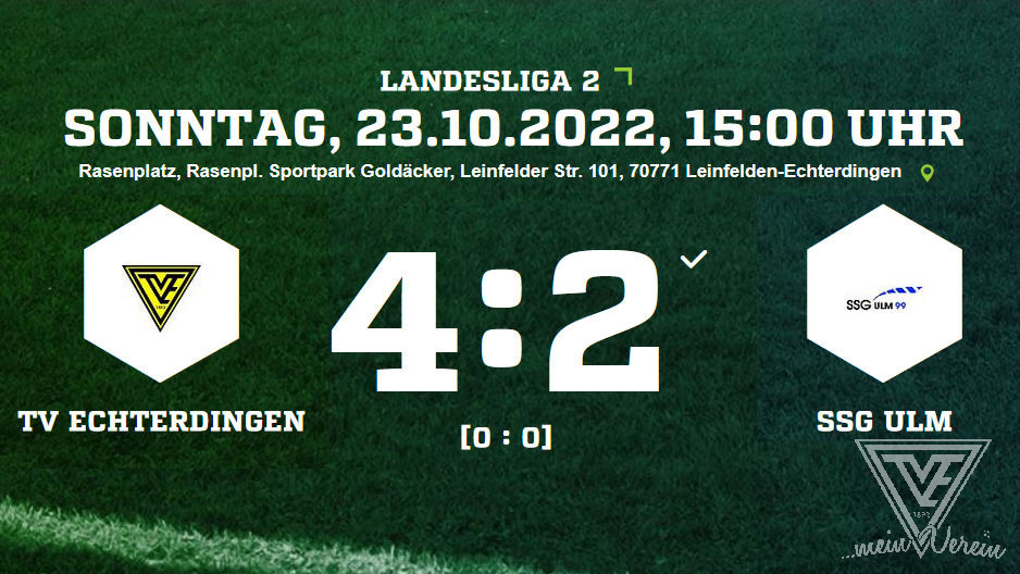 Der Unparteiische setzte mit dem Halbzeitpfiff dem torlosen Treiben auf dem Feld vorläufig ein Ende. Steffen Bührlen brach für die SSG Ulm 99 den Bann und markierte in der 61. Minute die Führung. Die passende Antwort hatte Max Bey parat, als er in der 64. Minute zum Ausgleich traf. Der Schuss von Yule Tröger schlug vor der sportlichen Kulisse von 90 Zuschauern im eigenen Tor ein. Das 2:2 des TV Echterdingen bejubelte Michael Deutsche (78.). Leon Gerxhaliu brachte den Echterdinger nach 83 Minuten die 3:2-Führung. Es waren nur noch wenige Augenblicke zu spielen, als Rui Tiago Caldas de Carvalho für einen Treffer sorgte (93.). Am Schluss fuhr das Filderteam gegen die SSG Ulm 99 auf eigenem Platz einen Sieg ein.