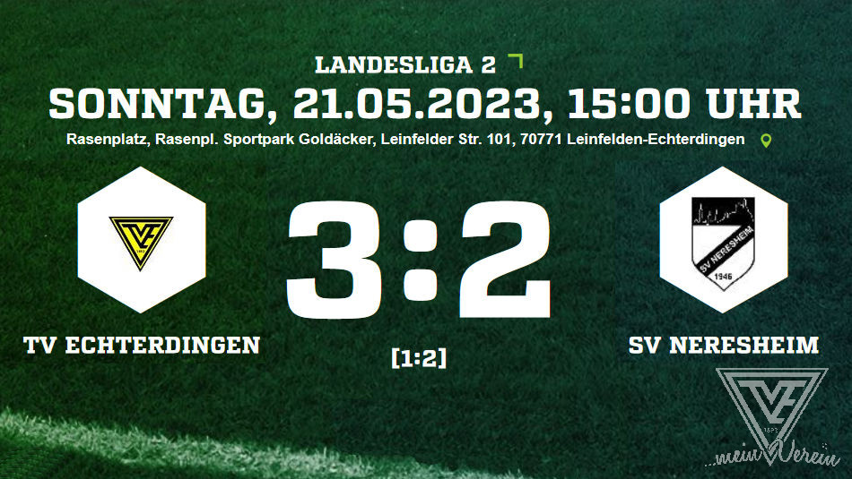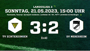 Der TVE landet gegen den SV Neresheim einen 3:2-Last-Minute-Sieg und bleibt oben in der Tabellenspitze. Die Partie hatte nocht nicht einmal richtig begonnen und schon konnten die Zuschauer zwei Treffer bejubeln - zunächst traf für die Gäste Hakki Yildiz (1.) zum 0:1, ehe Caglar Celiktas postwedend zum 1:1 (2.) ausglich. Doch in der 25.Minute brachte Dominik Pfeifer den SV Neresheim erneut mit 1:2 in Front. Die 2.Halbzeit wurde dann zum Zittern, erst in der 88.Minute die Erlösung Ugur Yilmaz glich zum 2:2 aus. Doch damit nicht genug, n der Nachspielzeit draf Ugur Yilmaz erneut und bescherte dem TV Echterdingen damit einen Last-Minute-sieg zum 3:2.