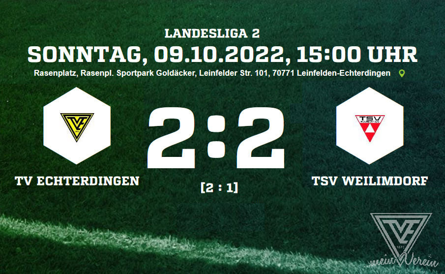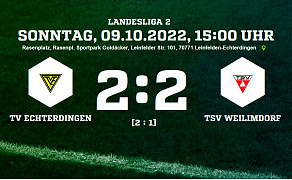 Beim Fünftplatzierten SV Neresheim kam der TV Echterdingen zu einem 2:2 (2:1). Bereits in der 6.Minute musste der TVE den ersten Gegentreffer durch Hakki Yildis hinnehmen. Doch es kam noch schlimmer – 23.Minute 2:0 für die Hausherren, Torschütze Ousman Bojang. Doch die Gelb-Schwarzen steckten nicht auf und kamen noch in der 1.Halbzeit zum Anschlusstreffer – Nils Große-Scharmann verkürzte auf 2:1 (32.). Zwei Wechsel des TVE - 46.Minute Alexander Schmidt für David Frenzel Medina und 54.Minute Ugur Yilmaz für Caglar Celiktas brachten neuen Schwung und auch den Ausgleich durch Rui Tiago zum 2:2 (58.).