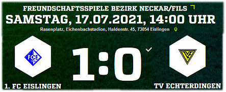 Im Spiel am vergangenen Freitag trennte sich der TV Echterdingen vom SV Kaiserbach (Landesliga Staffel 1) mit 3:3 (1:1). Die Treffer des TVE markierten allesamt die Neuzugänge : 0:1 (17.) Caglar Celiktas, 2:2 (71.) Nils Große Scharmann, sowie 3:3 (90.) Rui Tiago Caldas deCarvalho.