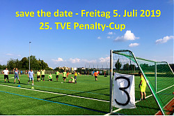 Business save the date: 5. Juli 2019 - 25. TVE Penalty-Cup Drucken Wer sich jetzt schon anmelden möchte, kann das natürlich gerne tun. Einfach eine Mail an mit dem Mannschaftnamen und Ansprechpartner schicken.