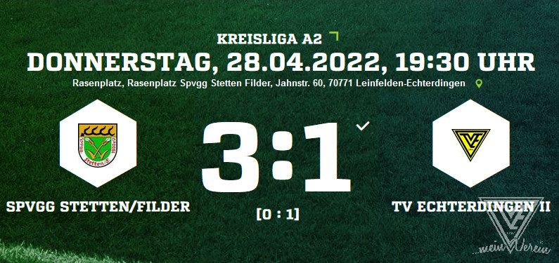 Die Serie ist leider gerissen... Derby in Stetten, unser Team konnte heute leider nicht die Leistung der vergangenen Wochen abrufen. Wir hatten zwar die erste Chance, doch Stetten kämpfte sich in die Partie und hatte ebenfalls gute Torchancen. Uns fehlte die Lockerheit sowie die Bewegung ohne Ball. Defensiv war es in der ersten Halbzeit noch ordentlich, offensiv kamen wir leider nicht in unser Kombinationsspiel. Leider trifft es uns aktuell hart und Mischa musste nach 30 Minuten verletzt vom Platz. Trotzdem erzielten wir durch Lenni die 0:1 Führung. Dies gab etwas mehr Sicherheit und kurz vor der Pause hatten wir die Doppelchance zum 0:2. In der 2. Halbzeit sind wir leider sehr früh in einen Konter gelaufen und hier erzielte Stetten etwas glücklich das 1:1. Stetten konterte sehr gut und wir waren in der Defensive nicht mehr so stabil. So erzielte Stetten zwei weitere Kontertore. Unser Team hat sich nicht aufgegeben und kämpfte sich wieder in die Partie. Eban hatte 10 Minuten vor Schluss die Großchance zum Anschlusstreffer. Am Ende ein nicht unverdienter Sieg von Stetten.