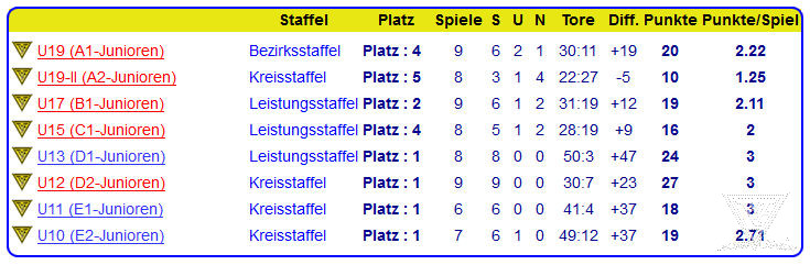Unsre Jugendmannschaften konnten in den vier jüngsten Jahrgängen mit Platzierungen (U10, U11, U12, U13) souverän jeweils die Meistertitel für sich entscheiden. Da könnte was heran wachsen, wenn wir uns alle nicht mit dem Erreichten zufrieden geben, stattdessen jetzt erst recht einen Gang hoch schalten.