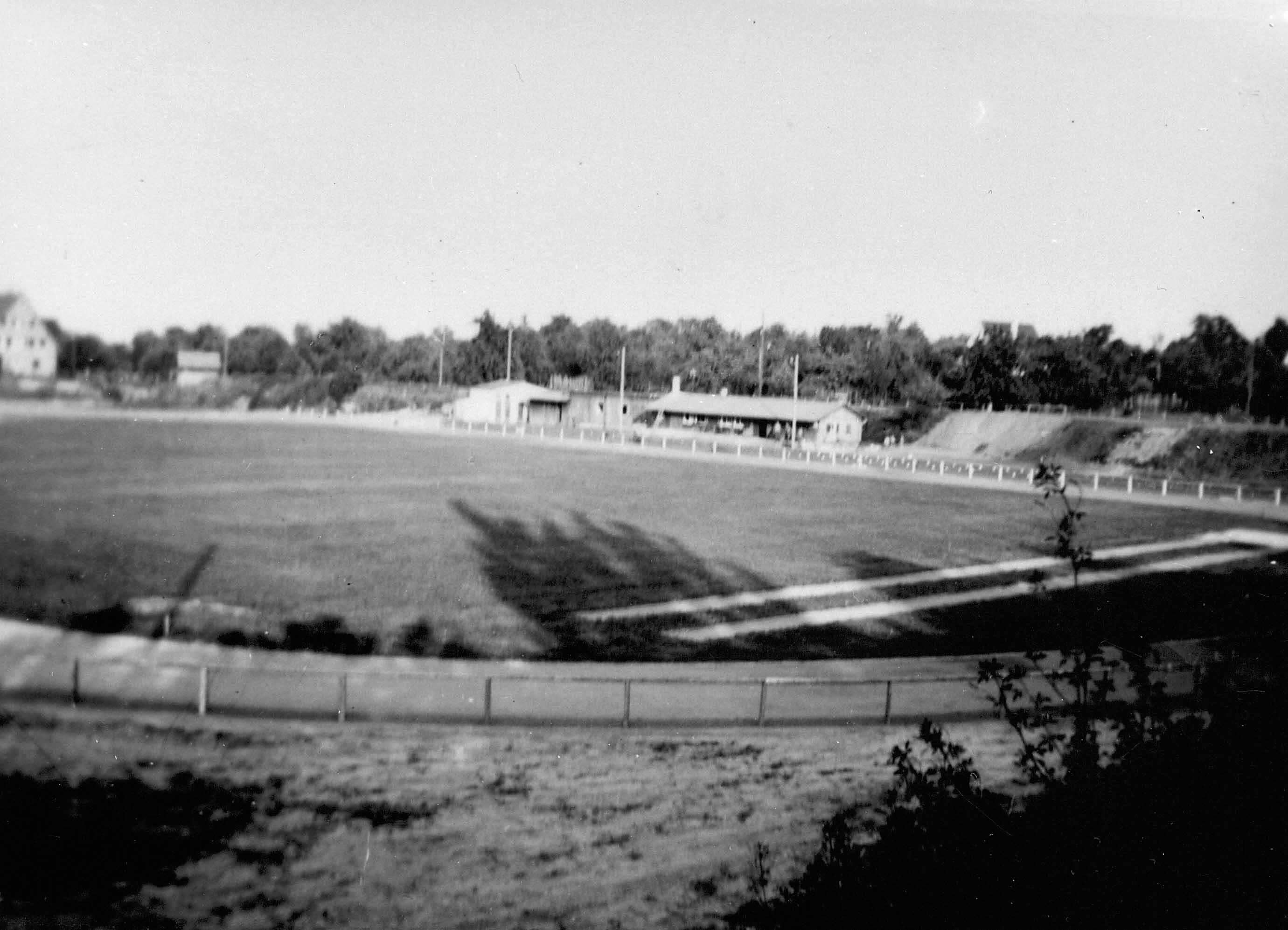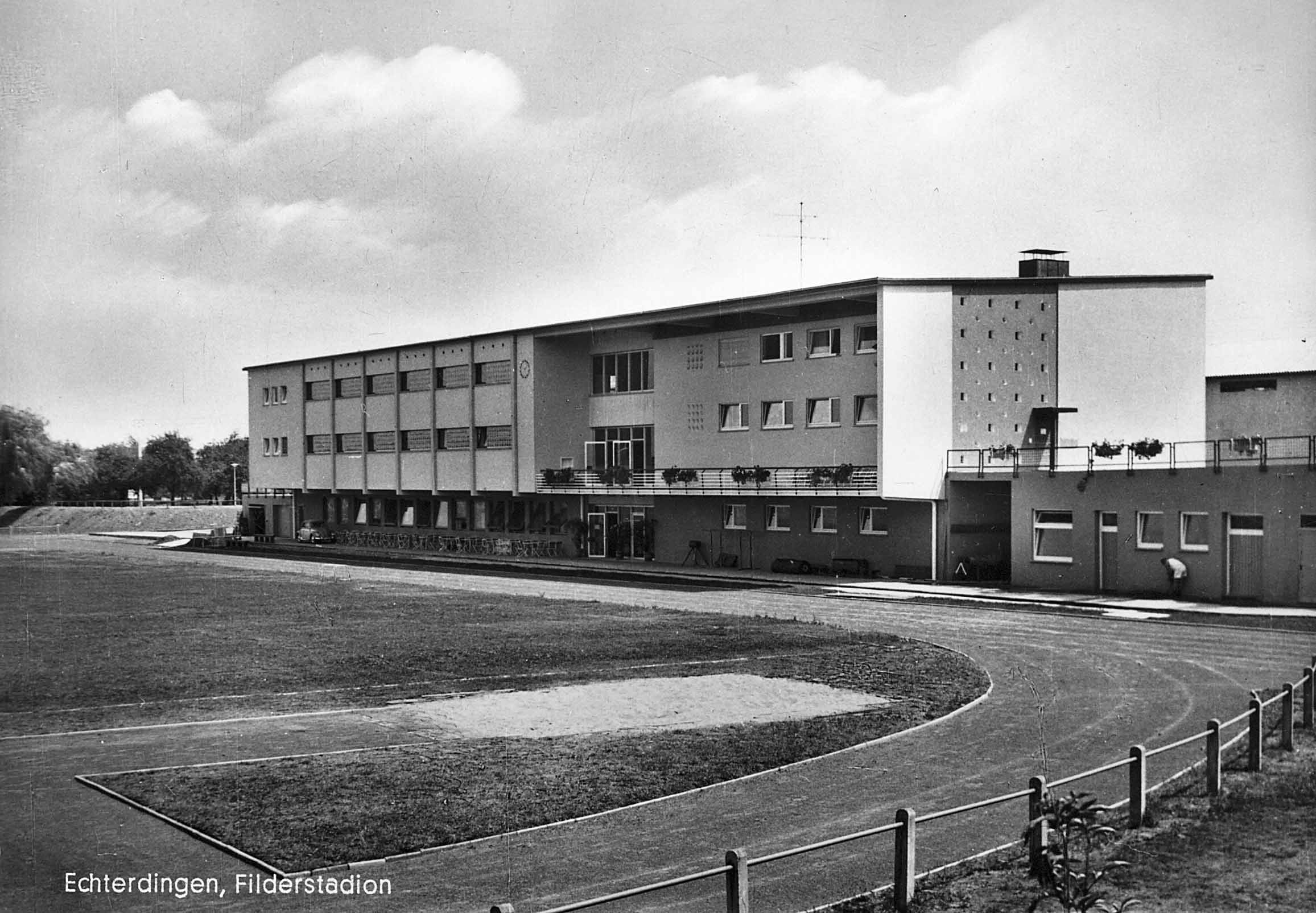 wunderbarer Blick über das Filderstadion beim Gauturnfest 1967. Im Hintertgrund die Alte Ziegei mit mit Ihrem beeindruckenden Schornstein